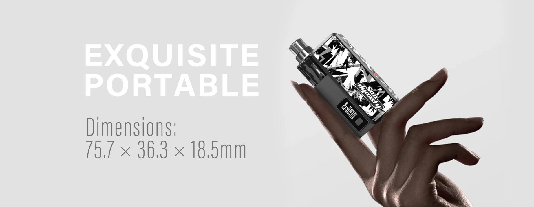 集成式 OLED 屏幕显示电池续航时间和功率等关键信息,并可在更换烟弹时自动调节功率,确保始终如一的口感和性能。这款设备采用锌合金和聚碳酸酯材质,小巧便携,兼具耐用性和时尚感。