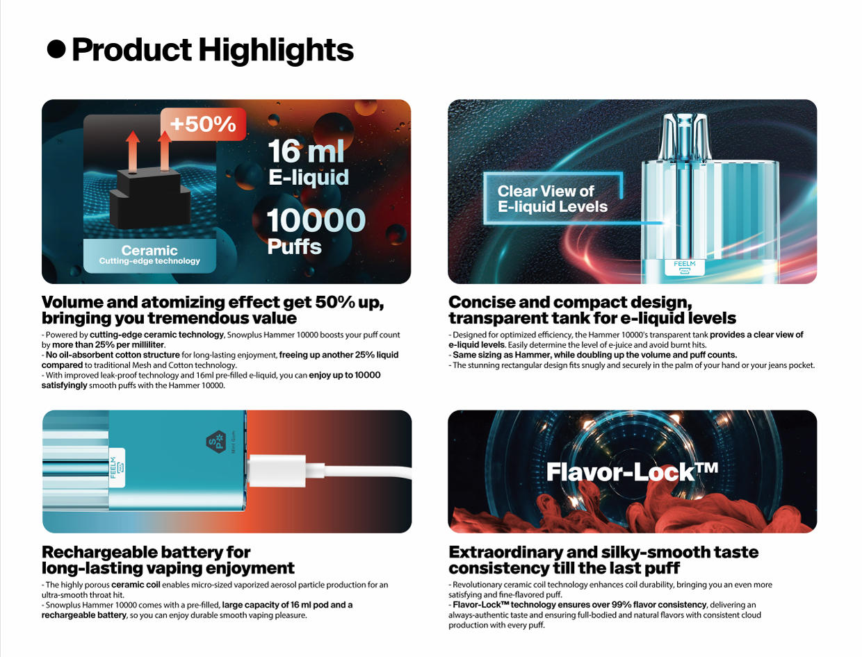 雪加大板砖Snowplus  Hammer 10000口 正品海外版 一次性16ml大容量一次性电子烟
