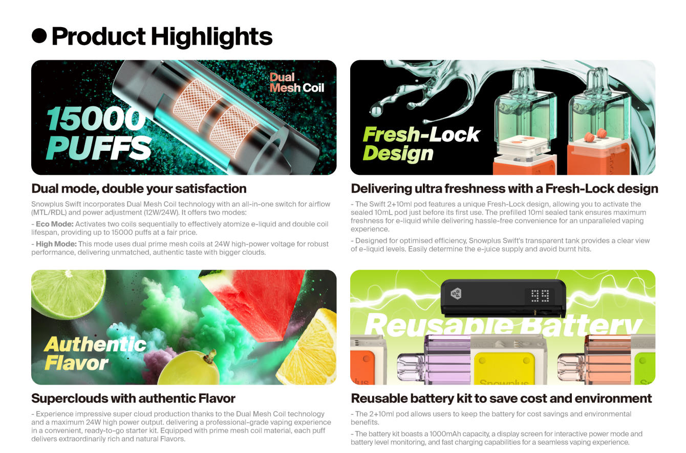 正品雪加积木Snowplus Swift 15000口可换弹电子烟套装/烟弹-多口味可选