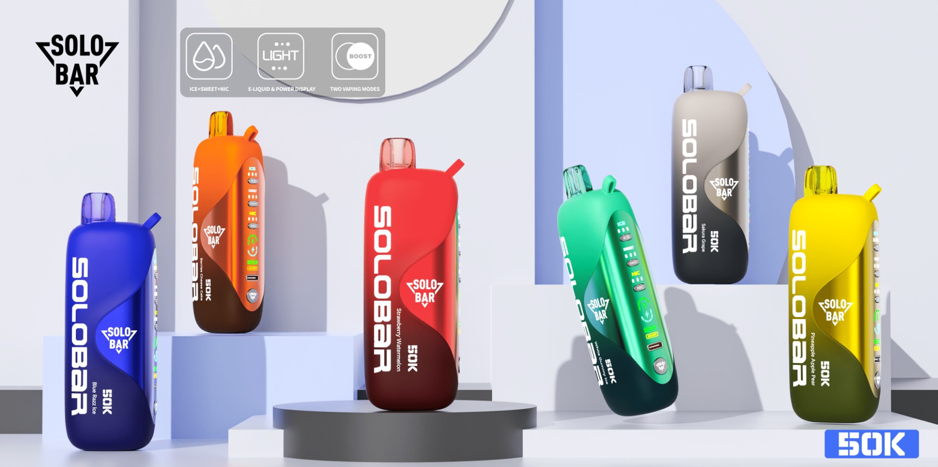 SOLOBAR 50000 电子烟是对一次性电子烟的全新诠释:它不仅拥有宣称的 50,000 口吸次数,还具备可调节的口味设置、独特的外观设计以及 35 毫升的大容量烟油仓。SOLOBAR 并非简单地模仿竞争对手,而是凭借其灵活的设置和充满活力的设计,提供丰富独特的电子烟体验。