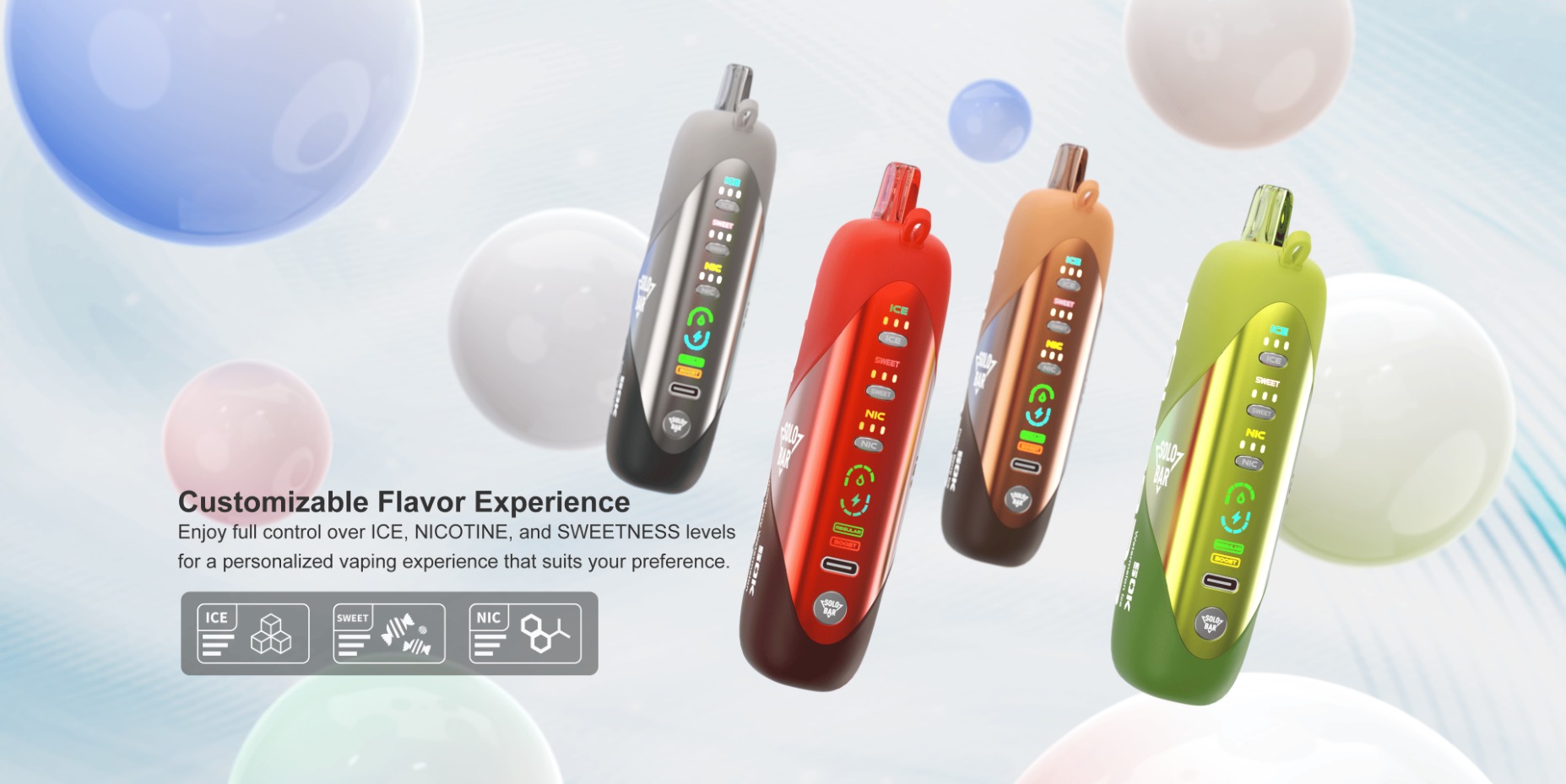 可定制的口味:该设备配备控制面板,可调节三个参数:口味强度(甜味)、清凉度(冰爽)和击喉感浓度(丁含量)。这使得 SOLOBAR 50000 在一次性电子烟领域独树一帜。