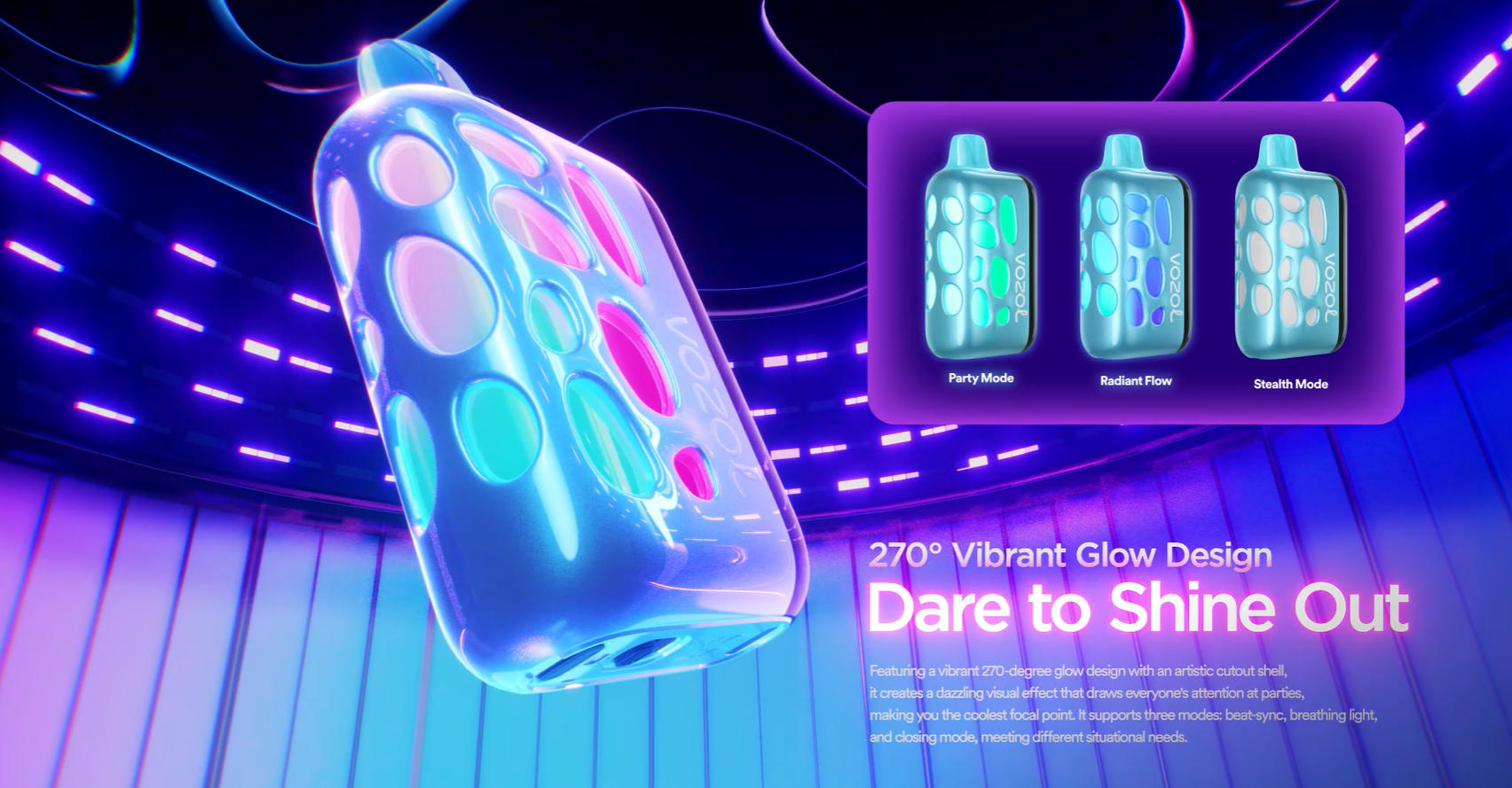 VOZOL RAVE 46000 是一款全球首款配备 270° 节奏灯光显示屏、快速充电、派对模式、动画以及可调节功率和抽吸强度的电子烟。