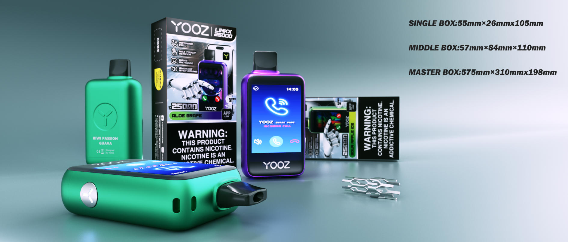 柚子YOOZ是风靡全球的电子烟品牌。它不仅追求产品的卓越性能和品质,更致力于融合科技,将电子烟的科技含量上升到全新高度。这款YOOZ LINKX 25000 一次性电子烟先进的设备拥有高达 25,000 口的容量,并具备与手机连接的蓝牙功能,能打电话,玩游戏使其有别于普通的一次性电子烟。这款设备的一大亮点是其超大触摸屏。它不仅仅是一块显示屏,更是一个提升电子烟体验的互动中心。动画界面为电子烟带来了趣味十足的现代感,用户在畅快抽烟的同时,还能轻松访问设置,享受视觉盛宴。YOOZ LINKX 25K 的音效将伴随您的使用,为您带来更丰富的感官享受。这些细微的音效与体验相得益彰,让每一次抽吸都更加愉悦,身临其境。