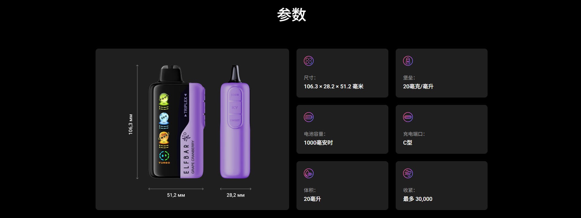 ELFBAR TRIPLEX 30000口 20毫克,可调节酸 甜 冰度 俄版 一次性电子烟